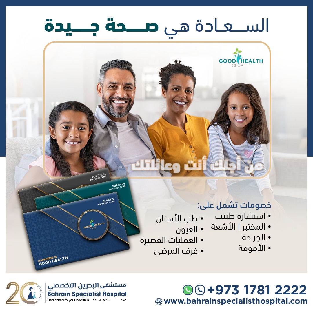هل أصبحت فواتيرك الطبية ثقيلة للغاية؟ يمكنك الآن الحصول على رعاية صحية ميسورة التكلفة في البحرين بمساعدة بطاقات امتياز الصحة الجيدة من مستشفى البحرين التخصصي.يمكنك الحصول لك ولأحبائك على جميع الفحوصات والعلاجات الأساسية بأسعار معقولة من قبل خبراء في مستشفى البحرين التخصصي. يمكن استخدام بطاقة الامتياز من قبل الأشخاص الحاصلين على تأشيرة الزيارة أيضًا! نقدم ثلاث باقات يمكنك الاختيار من بينها