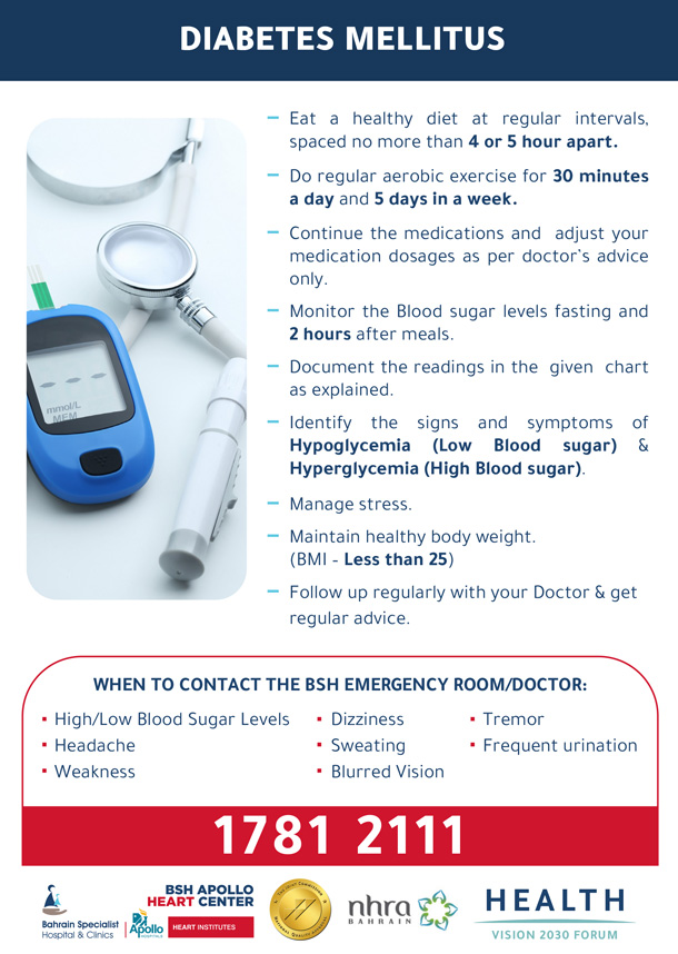 - التعرف على علامات وأعراض نقص السكر في الدم (انخفاض السكر في الدم) وارتفاع السكر في الدم (ارتفاع نسبة السكر في الدم).