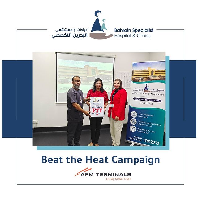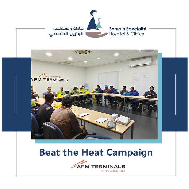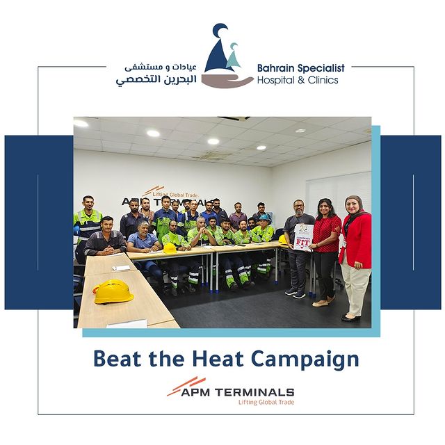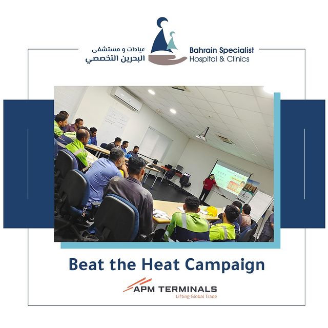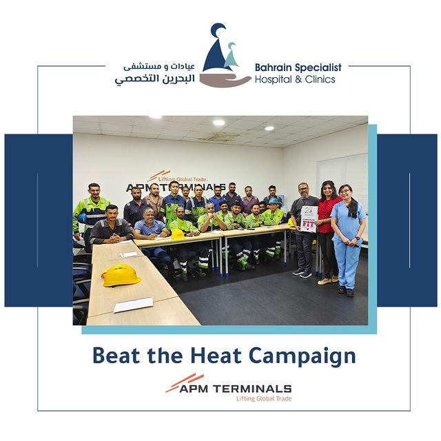 Bahrain Specialist Hospital held a summer awareness session on common skin diseases at APM Terminals clinic as part of the Beat the Heat Campaign conducted by Dr. Anitta Thampi, Dermatology Specialist. This session aims to educate and spread awareness about the most common skin problems. Here are some pictures from the workshop.