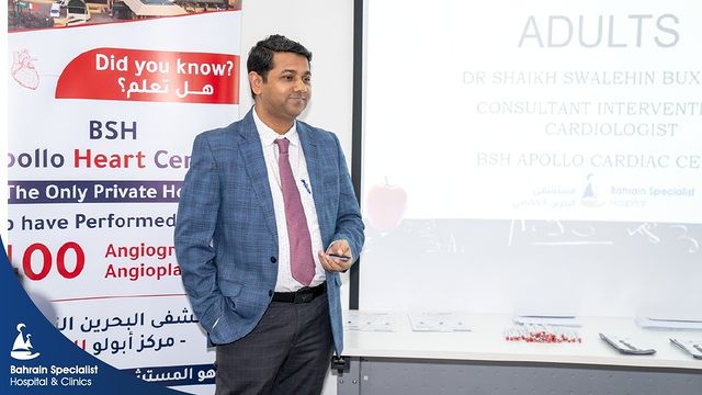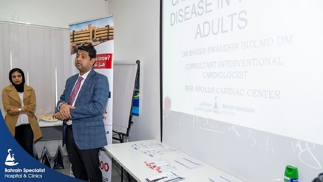 Bahrain Specialist Hospital recently organized a preventative Health screening and awareness session at Wyndham Grand Manama, Our Specialist Interventional Cardiologist Dr. Abdul Azeez Mohammed delivered an interactive talk on "A Healthy Heart", which was well appreciated by all attendees. Bahrain Specialist Hospital regularly performs screenings and talks as part of its corporate social responsibility efforts to educate and improve the health of residents in Bahrain.