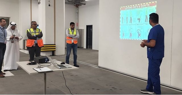 On the occasion of World Health Day, Bahrain Specialist Hospital Airport Clinic at the Bahrain International Airport organized a workshop for the baggage handling department, highlighting best practices and safe methods to aid in their day to day work. Pictured are moments from the workshop.