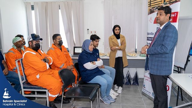 Bahrain Specialist Hospital conducted a healthy heart camp in conjunction with SVITZER Bahrain SPC on 16th June 2022 at their facilities at Khalifa bin Salman Port in Hidd. Dr. Shaikh Swalehin Bux, Consultant Interventional Cardiologist, also gave a short presentation on cardiac issues in adults during the camp.