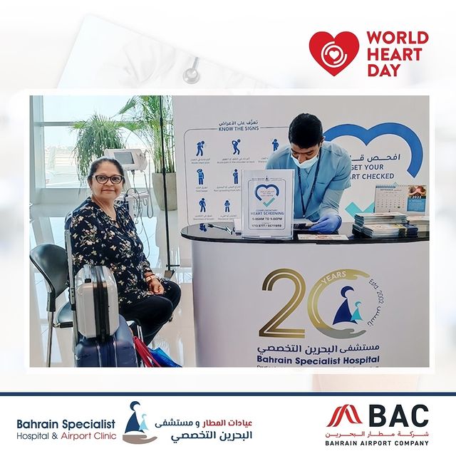 To commemorate the world heart awareness month, Bahrain Specialist Hospital (BSH) in association with Bahrain International Airport will be offering complementary primary heart screening at the BSH Airport Clinic. You may reach out to us at the BSH Healthy Heart Zone located at the airport departure lounge to avail your complementary screening voucher. Prioritize your health before you fly!